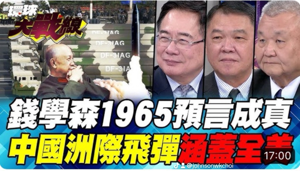 Taiwan US-China experts video: Qian Xuesen’s 1965 prediction came true, China’s intercontinental hypersonic missiles can reach every corner of the United States 台灣中美尊家視頻: 錢學森1965年預言成真,中國州際飛彈涵蓋全美.