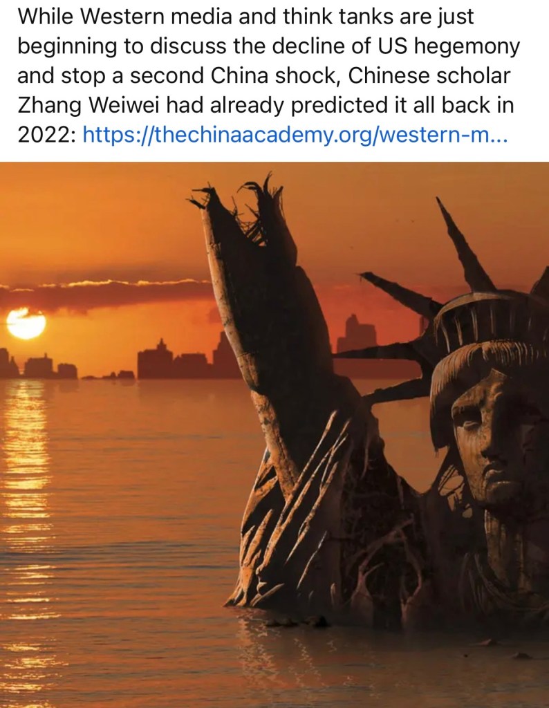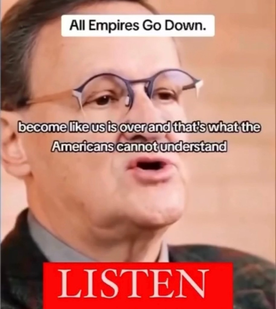 Video: Empires usually last no more than 300 years, US is of no exception, the last 50 years would experience the worst decline. If history an indicator of future events, US will be 300 years old on 2076, steep decline shall commence on 2026. 帝國的壽命通常不會超過300年,美國絕不會是例外, 最後50年會經歷最嚴重的衰退。如果以史為鑑,美國將在 2076 年迎來 300 歲生日,並從 2026 年開始面臨急劇衰退. https://rumble.com/v5cqggq-empires-usually-last-no-more-than-300-years.html https://www.tiktok.com/t/ZP81wAcpX/
