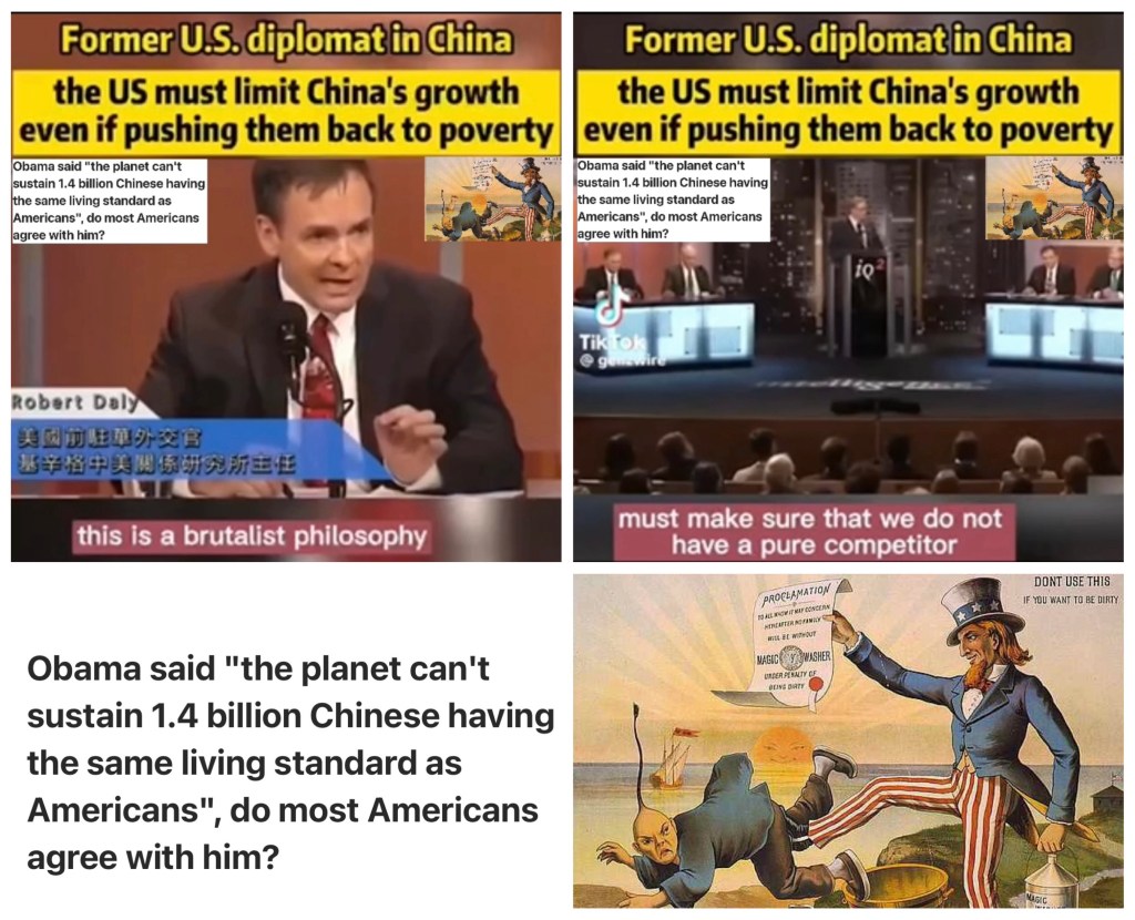 US President & Diplomats video: US must push China back to poverty, this planet cannot sustain 1.4 billions Chinese 美國總統與外交官視頻: 美國必須用任何手段讓中國重新陷入貧困,這個星球無法養活14億中國人,美國人必須控制所有資源,絕不能讓中國人享有.
