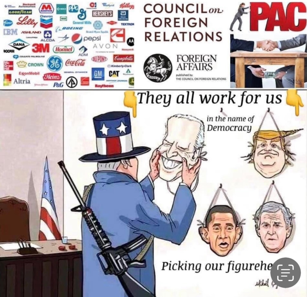 This picture tells all. No matter how incompetent the US presidential candidate and claiming US has democracy, US is controlled by less than 1% of the elites. They have the final say. Going to the polls every 2 years is like going to Church, when was the last time your prayers got answered? 這張圖說明了一切。不管美國總統候選人多麼無能,還聲稱美國有民主。美國由不到1%的精英控制。他們有最終決定權。每兩年去一次投票就像去教堂一樣,您的禱告有得到回應嗎?