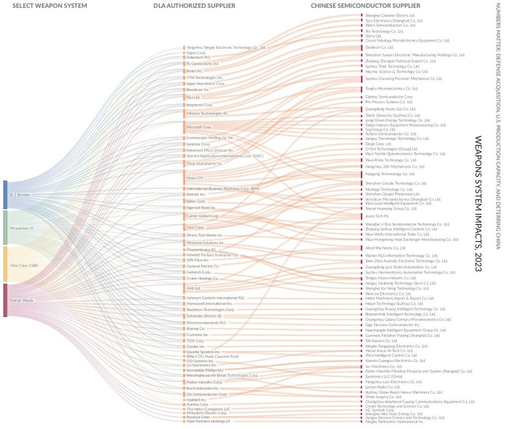 The primary objective of the semiconductor export curbs is to deny the Chinese military access to chips necessary to build and operate weapons platforms. But the dependency on chips and electronics is more evident on the US side, after a careful analysis of the Department of Defense supply chains in critical weapons systems.