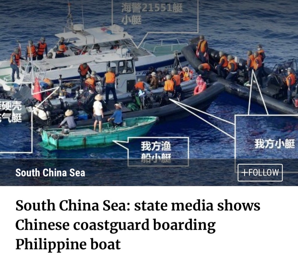 Video: China Coast Guard (CCG) on Wed show the CCG’s interception, boarding, inspection and expelling of Philippine vessels when they illegally intruded into waters near China’s Ren’ai Jiao in the South China Sea on Mon. 中國海警週三展示了中國海警對週一非法侵入中國南海仁愛礁附近海域的菲律賓船隻進行攔截、登輪檢查和驅逐的情況.