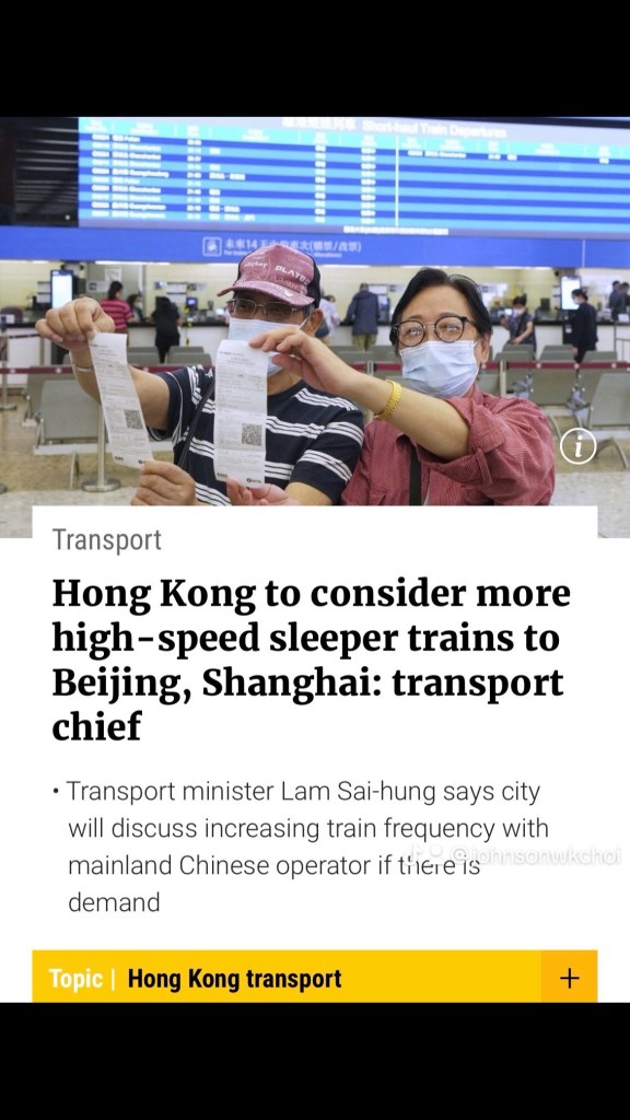 Under the new regular service, trains departing from Hong Kong’s West Kowloon terminus would take about 12½ hours to get to Beijing West railway station and around 11 hours to Shanghai Hongqiao railway station.