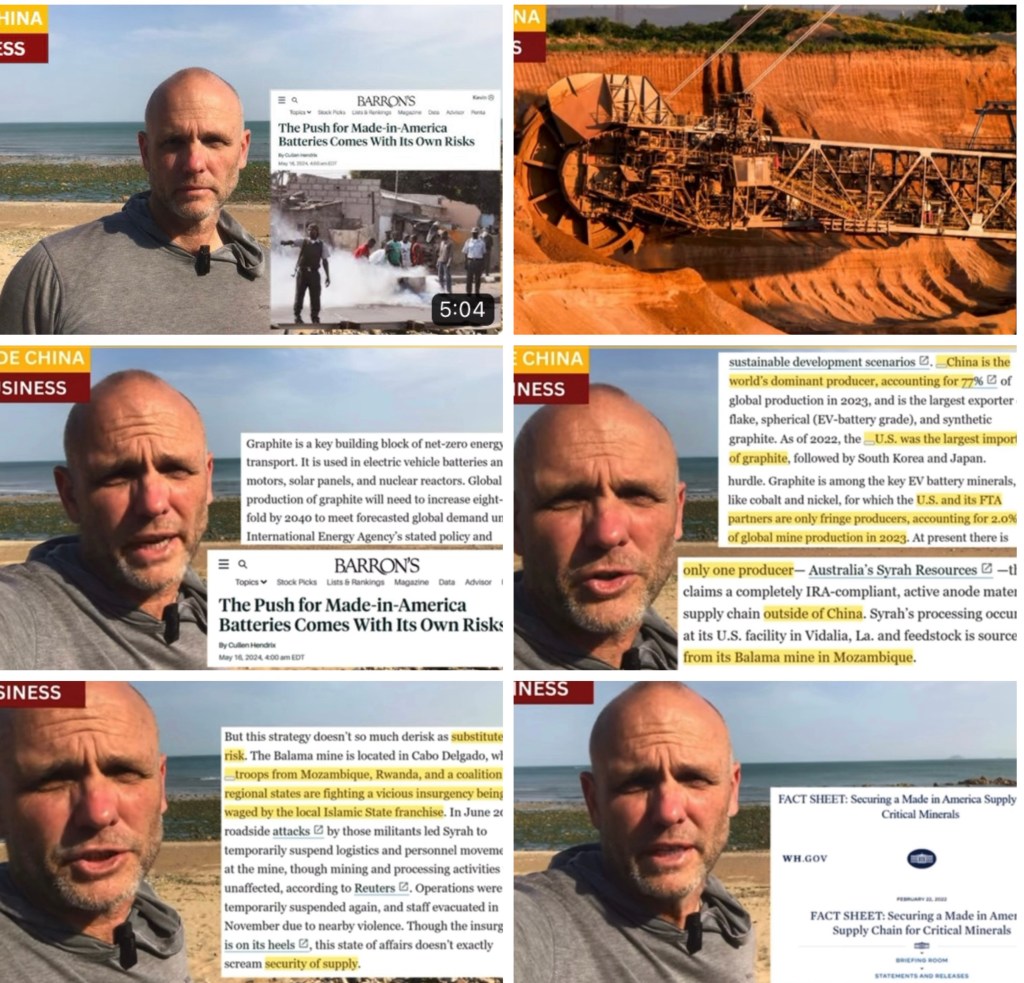 The White House relaxed the rules under the Inflation Reduction Act, to allow US carmakers to source graphite from Chinese companies and still qualify for subsidies. This move came as a regional war in Mozambique engulfed the only qualified supplier of graphite under the Act, and carmakers were left scrambling to find graphite, a key component of electric vehicle batteries.