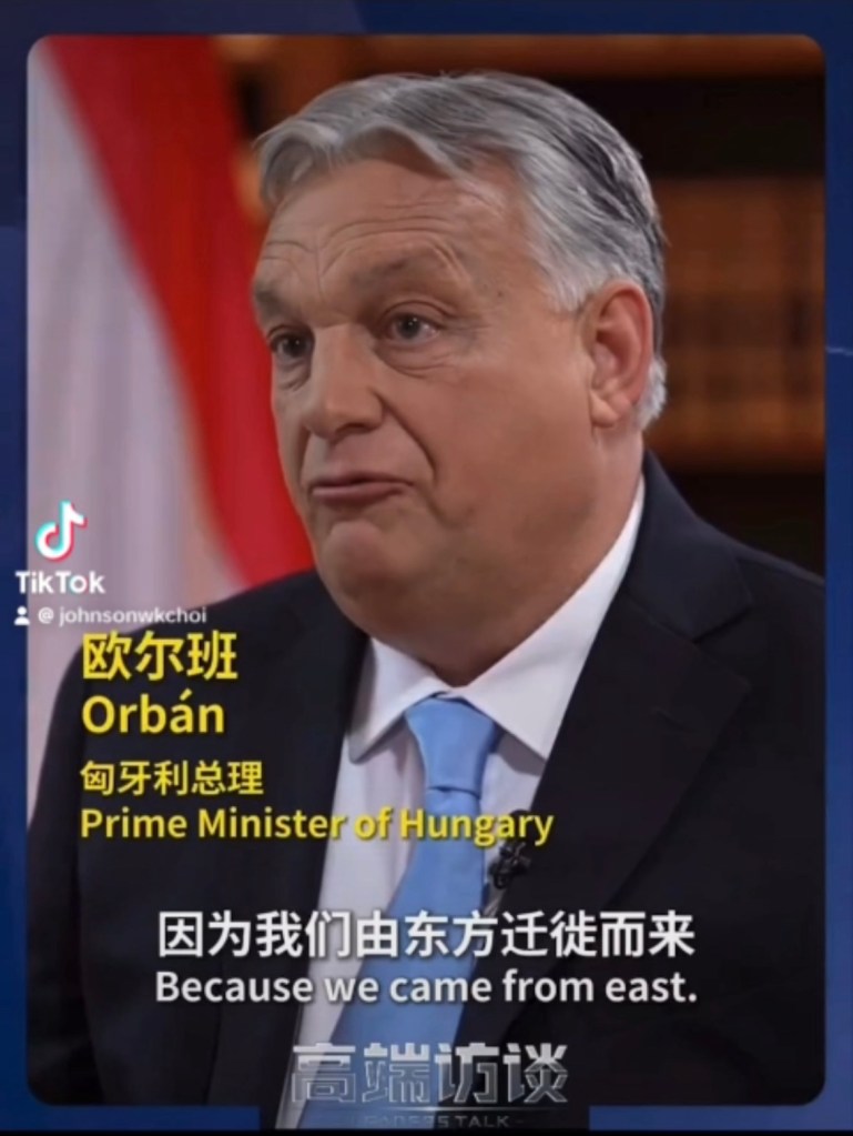 Hungarian PM Viktor Orbán video: “We came from east. When somebody from east is coming to Hungary, especially with the high civilization for thousands of years as China, it always has a special emotional element of that meeting. It’s a good reason to say to President Xi Jinping that feel at home.” 匈牙利總理維克多·歐爾班:「我們來自東方。當來自東方的人來到匈牙利,尤其是像中國這樣擁有數千年高度文明的國家時,那次見面總是帶著一種特殊的情感元素。這是向習近平主席說“賓至如歸”的好理由.