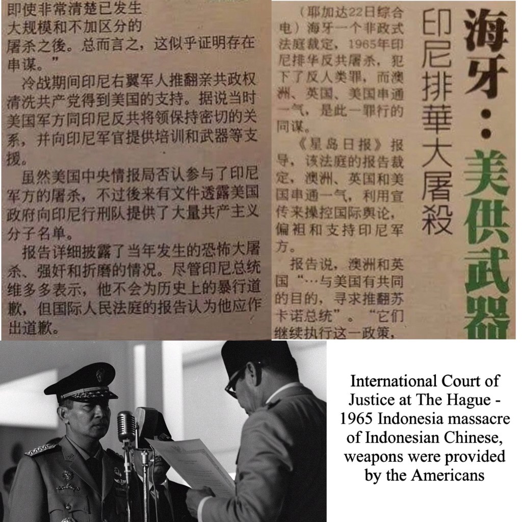 美國自1882年通過的排華法案今天仍然以不同的名義有效,海牙國際法院-1965年印尼屠殺印尼華人,武器是美國提供的。 1999年美國發射飛彈摧毀了中國駐貝爾格萊德大使館。歐巴馬總統:我們不能讓中國人像美國人一樣過上好日子。川普/拜登:中國所做的一切違反美國國土安全的行為都必須被禁止.