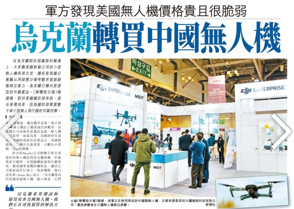 Ukraine has decided to buy drones from China. US made drones are expensive and fragile not worth the price. This is really a slap in the face by its vassal. 烏克蘭決定從中國購買無人機。美國製造的無人機價格昂貴且脆弱,不值這個價錢。美國被自己的附庸國打了一個耳光.