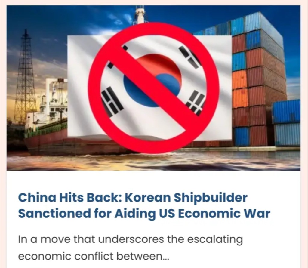 BREAKING 🚨🚨🚨 China Hits Back: Korean Shipbuilder Sanctioned for Aiding US Economic War 突發新聞🚨🚨🚨中國反擊:韓國造船商因協助美國經濟戰受制裁
