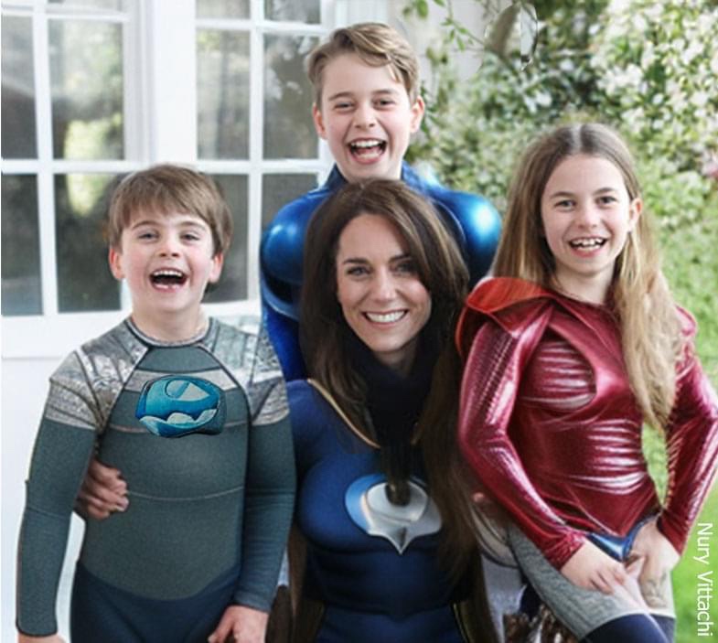How can journalists attack Princess Kate for using Photoshop? Journalists use it all the time. To help her out, I’ve done a quick example for her to use next time, giving her family superhero outfits