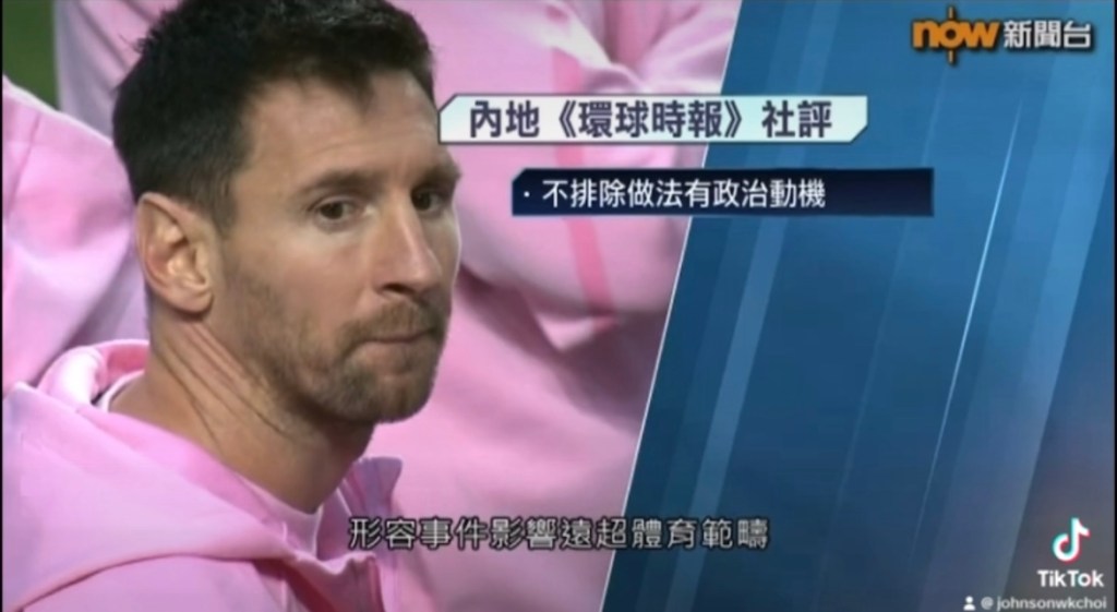 Video: Lionel Messi is not welcome in Beijing. Messi no show at HK match is politically motivated intentionally to embarrass HK Government and China with outside (US) forces 美斯缺陣, 阿根廷國家隊下月訪華 北京市民:不歡迎美斯. 社評指,不排除美斯缺陣有政治動機;而美斯代表的阿根廷國家隊將在下月訪華,有北京市民說不歡迎他。