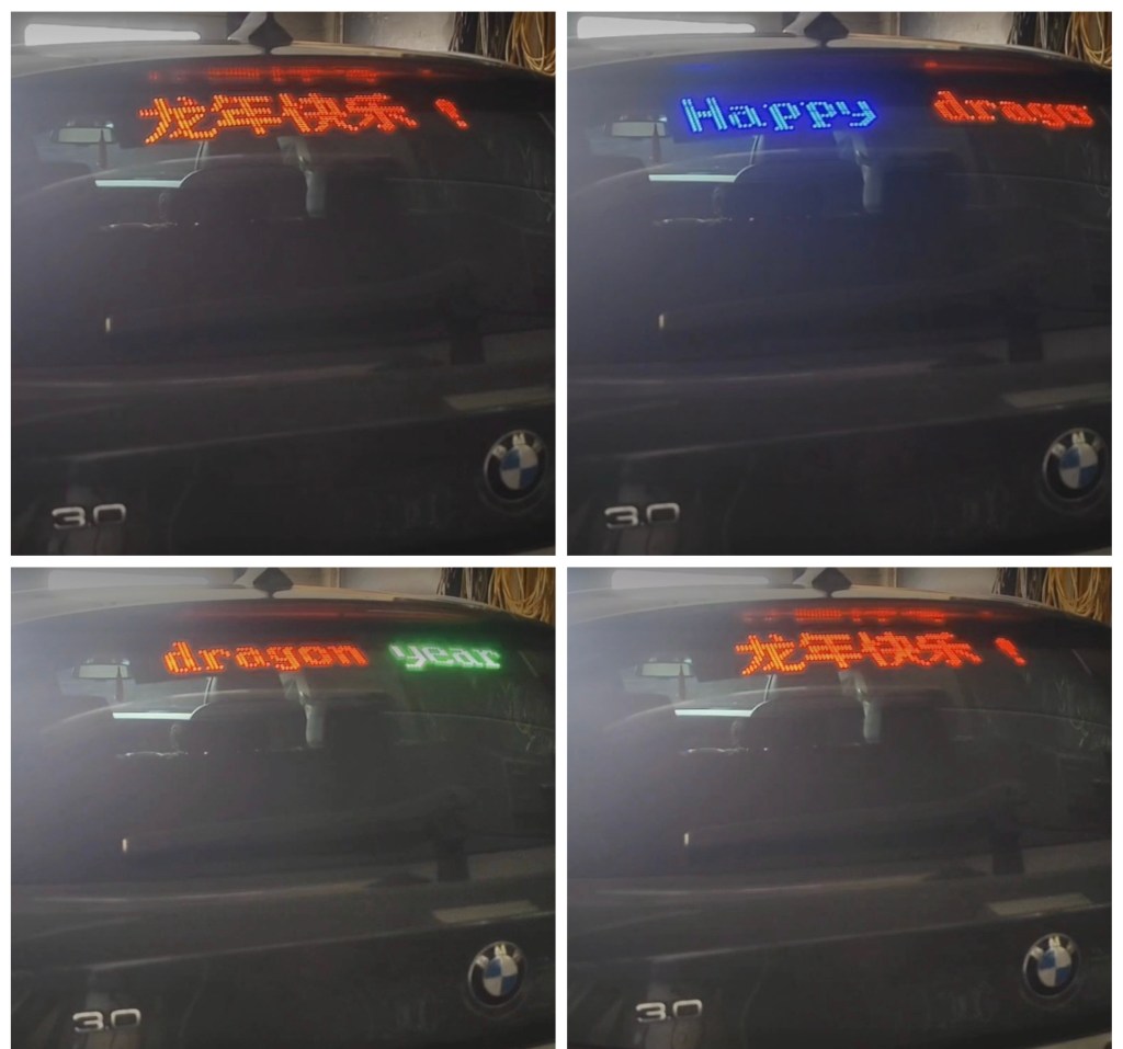 From my friend in Europe put year of the dragon display in his BMW video: If we put it in our car in US, our car windows will be smashed in no time by Asian Hates Racists supported by US politicians. 我歐洲的朋友在他的寶馬放了龍年的電子標牌, 如果我們把它放在美國的車裡,我們的車窗很快就會被美國政客支持的亞洲仇恨種族主義者砸碎.