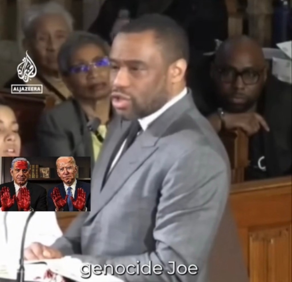 I don’t think that there’s been a genocide that you didn’t support. From Congo to California, from the Philippines to Palestine, you didn’t even fight the Nazis to stop the Holocaust. That was just your retroactive rationale. It wasn’t the millions of Jews. It was 2,000 marines at Pearl harbor that got you into the war. At Pearl Harbor, a military base on yet another territory colonized by the United States. And in response to that, you carpet bombed civilians in Germany. You murdered 80,000 innocent people in an instant in Hiroshima and another 40,000 at Nagasaki in an instant, all in so-called self-defense.