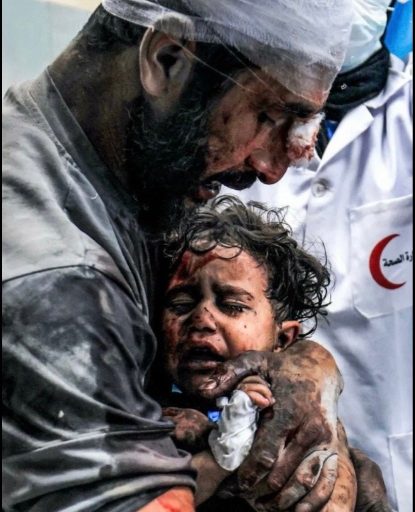 You make up the rules as you go. You always have. And then, even then, the rules that you make up on the fly, you still don’t even follow those. That’s because you’re violent. You are violent, and you believe in violence. What was that that Netanyahu said? We’re the People of The Light: bombing women and babies, hospitals, churches dropping white phosphorus on people to burn their skin off, blowing up entire city blocks of innocent civilians.