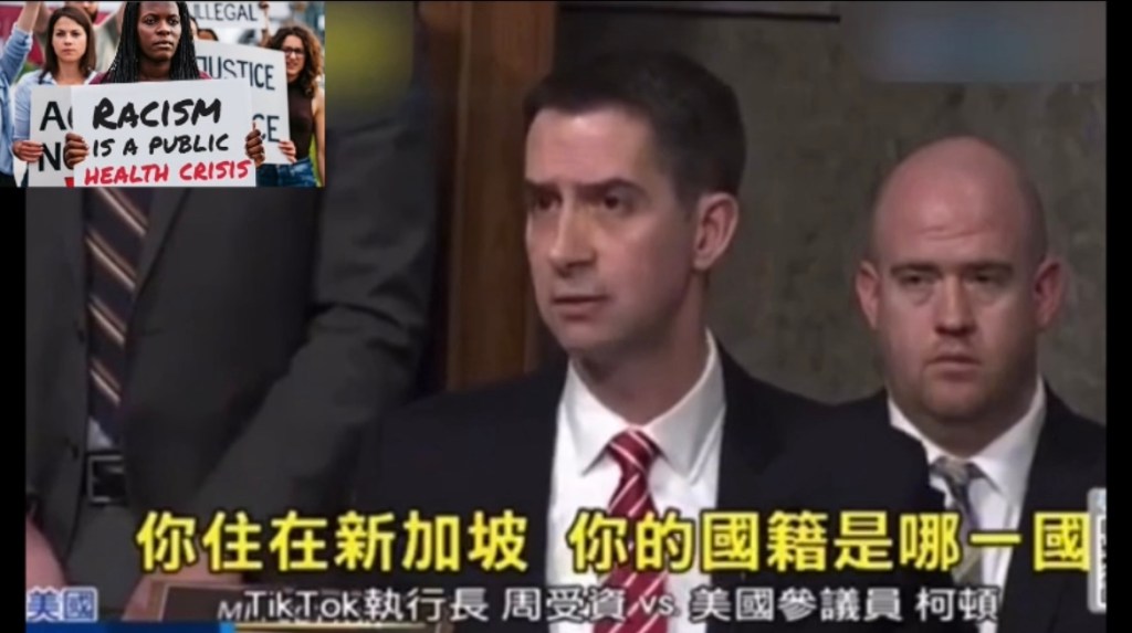 Video: Racists use fictitious China threats cowardly hiding behind homeland security to demonize Chinese, China and Asian Americans claiming every Chinese is communist 視頻: 種族主義者膽怯地躲在國土安全背後利用虛構的中國威脅來妖魔化華人、中國和美國華人. 看到华人就是共产党,看到中东人就是恐怖分子 美國加州世界日報: 國會議員追問TikTok執行長周受資「哪國公民」 被批仇華 共和黨籍阿肯色州聯邦參議員柯頓(Tom Cotton)1月31日在參院司法委員會兒童網路安全聽證會上,連番質問抖音(TikTok)執行長周受資(Shou Zi Chew)「是哪國公民」及「是否曾與中國共產黨有關係」。對此,許多人在社群媒體指責柯頓的行徑根本就是仇華的種族主義。 https://rumble.com/v4awd53-racists-use-fictitious-china-threats.html https://www.tiktok.com/t/ZT8Wsrhky/ 👈