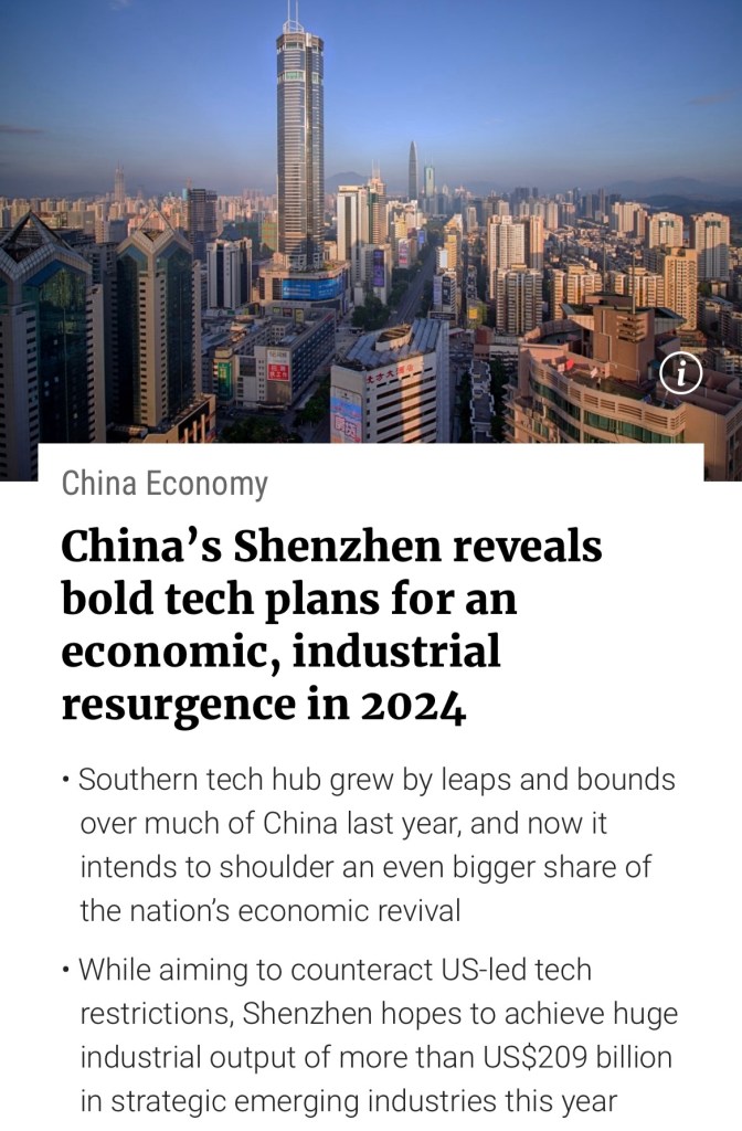 The southern city where China’s economic transformation began more than four decades ago, and which has seen its hi-tech industry become the bellwether for growth, is vowing to double down on efforts to shore up the sector as the nation strives to move up the industrial chain and counteract US-led tech restrictions. 利用東起西降的百年大變局取代美國已經成為定局.