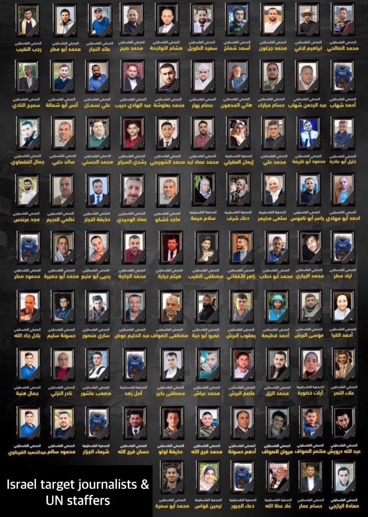 Israel targeting journalists & UN staffs: According to Committee to Protect Journalists, 90+ journalists and 101 UN staffers killed in Gaza since Oct 7th, largest in UN history. 以色列故意地殺害記者和聯合國工作人員: 據保護記者委員會報告, 自10月7日以來, 已有 90多名記者和101名聯合國工作人員在加薩遇害, 這是聯合國歷史上最大的損失.
