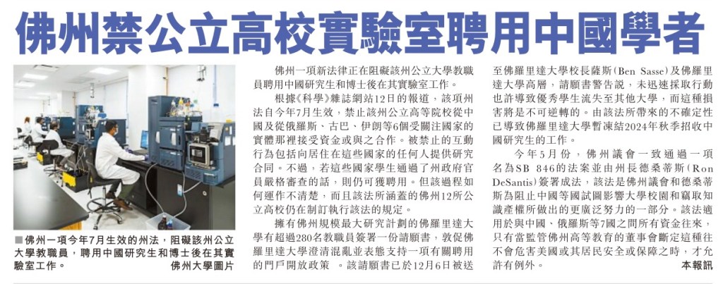 Did some American Chinese leaders fantasize that the 1882 Chinese Exclusive Act was appealed? Florida banning all public schools hiring Chinese in their laboratory! 一些美國華人領導人是否幻想1882年的排華法案已經被廢除? 佛羅裡達州禁止所有公立學校在實驗室僱用中國人!