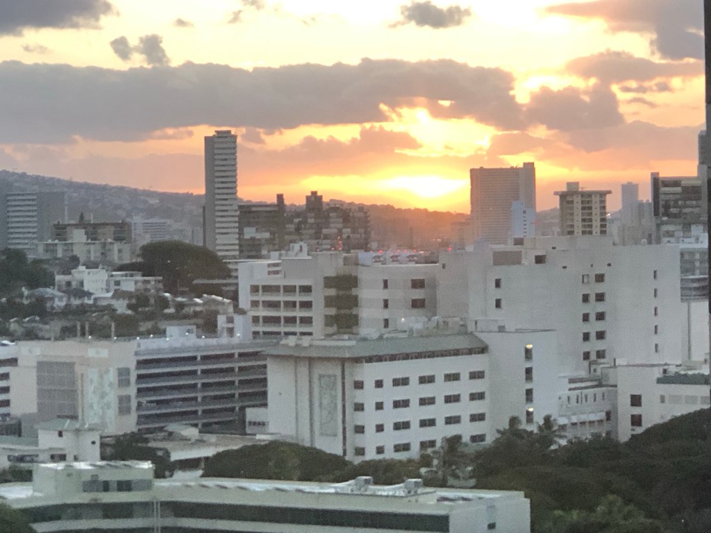 Hawaii Sunrise view from my office in downtown Honolulu, next time to see the morning sunrise will be after the New Year. Happy Holidays. 從我在檀香山市中心的辦公室看到的夏威夷日出, 下次看早晨日出將在新年之後. 祝福大家聖誕 和新年快樂. 12-14-2023
