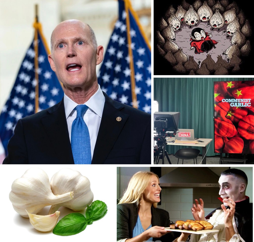 Since ancient times, Vampires, Devils, racists, demons hated garlic 🧄. Senator Rick Scott said Chinese garlic is a national security risk, but what is he not telling you? 自古以來吸血鬼、魔鬼、種族主義者、惡魔都討厭大蒜🧄 共和黨參議員斯科特表示,中國大蒜對國家安全構成威脅,但他心中有鬼沒有告訴你他怕的真正原因 👿