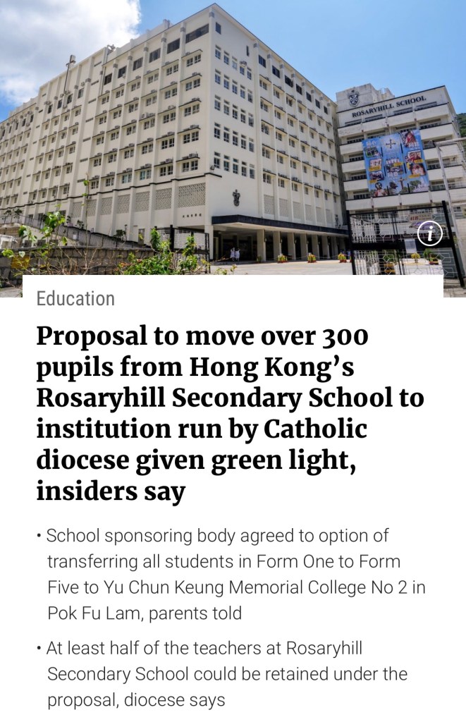 Rosaryhill School has been going downhill since it received HK government subsidy. The quality of students went down compound with problems such as declining HK birth rate, anti-mainland China narrative, disfunctioning old students association. In the end the only value left for the school is the underlying real estates. I am almost certain someone will be very rich when the property sold to build luxury homes worth billions! by 蔡永強 Johnson Choi, RHS, Class of 1973 10-16-23 玫瑰崗學校自從獲得香港政府資助後就一直在走下坡。 學生品質下降,加上香港出生率下降、校內有不小反中反大陸言論、學生會功能失調多年等問題。 最終學校剩下的唯一價值就是底層房地產。 我幾乎可以肯定,校園將在數年內被出售來建造價值數十億的豪宅, 有人會變得非常富有.