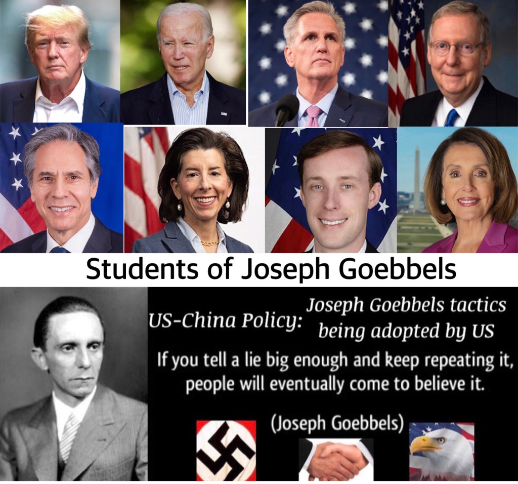 These are Proud Students of Joseph Goebbels: “If you tells a lie big enough and keep repeating it, people will eventually come to believe it.” 這些都是約瑟夫·戈培爾驕傲的學生: “如果你撒一個足夠大的謊言並不斷重複,人們最終會相信它.” https://www.jewishvirtuallibrary.org/joseph-goebbels-on-the-quot-big-lie-quot