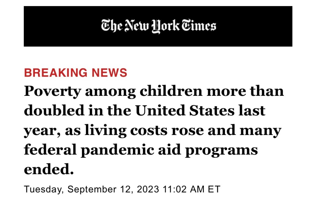 NYT Breaking News: U.S. poverty rate soared in 2022, China moved people out of poverty, US forced Americans into poverty. The overall poverty rate rose to 12.4 percent in 2022 from 7.8 percent in 2021, the largest one-year jump on record. 紐約時報突發新聞:2022年美國貧困率飆升,中國讓人們脫貧,美國讓美國人陷入貧困。 總體貧困率從 2021 年的 7.8% 升至 2022 年的 12.4%,這是有記錄以來最大的一年增幅.