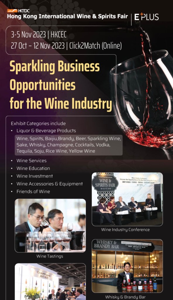 Mark your diary for HKTDC International Wine & Spirits Fair, 3-5 November 2023 in HK Best and Biggest in Asia I am planning to attend! For wines lovers, you don’t want to miss it 我打算參加呢! 對於葡萄酒愛好者來說,你一定不能錯過 https://hkwinefair.hktdc.com/dm/2023/BBM/index_os.html