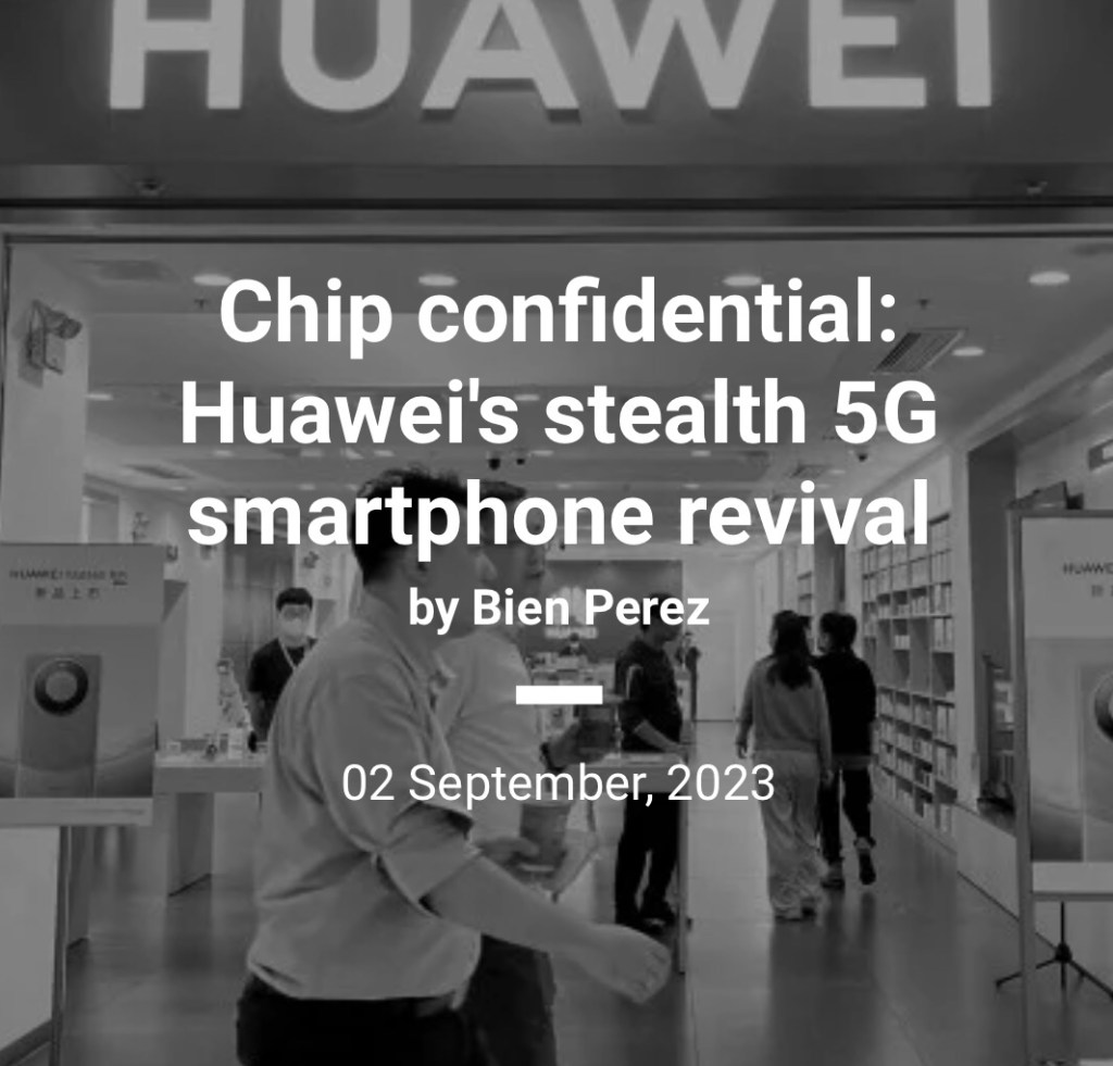 Secretive Huawei pulls off 5G phone comeback amid US sanctions 華為在美國製裁下成功捲土重來5G手機 By Bien Perez, senior production editor with the SCMP’s technology desk
