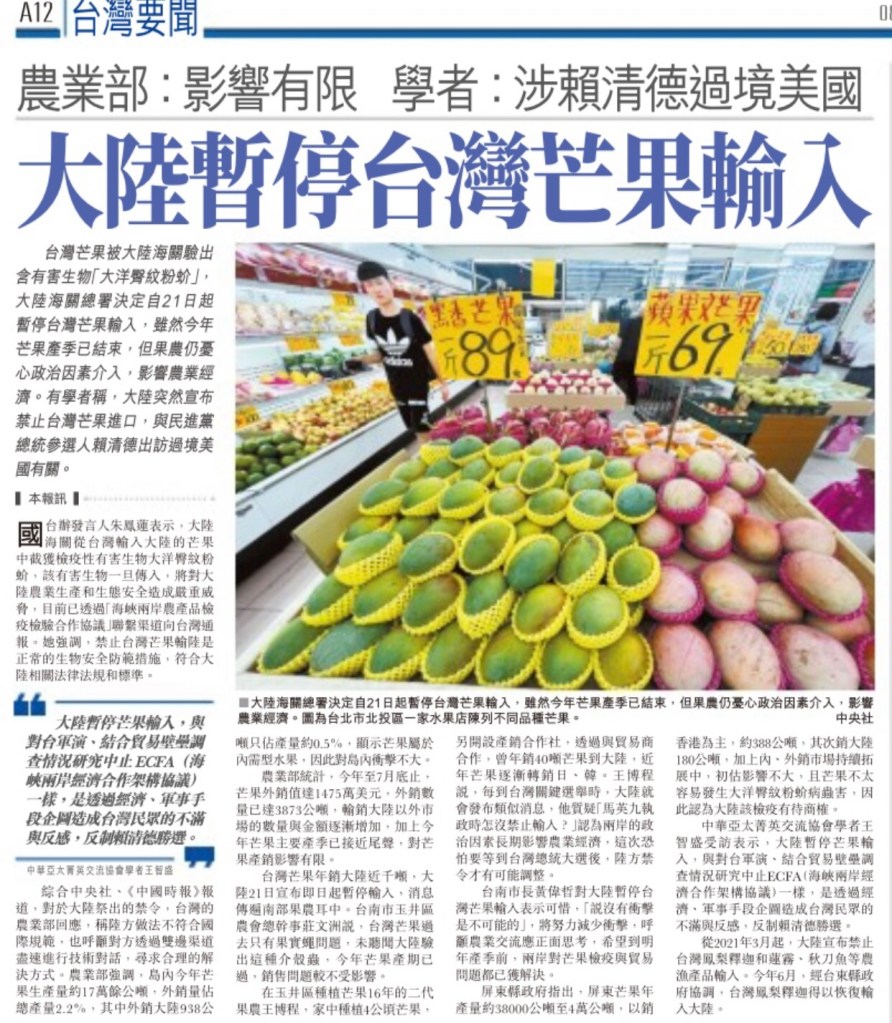 Taiwan province has an annual US$100-150 billion trade surplus with China. The trade surplus is a result of Taiwan restricting China products thus creating an artificial surplus. This has been going on for more than 15 years. 台灣省對大陸每年有1000 – 1500億美元的貿易順差。 貿易順差是台灣主要原因是限制中國產品進入台灣省從而人為製造順差的結果。 這種情況已經持續了 15 年多.
