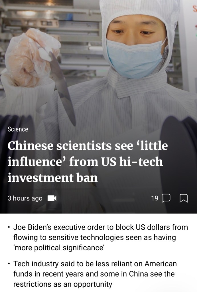 Biden ends Techology collaboration and investment in technology sectors with China is American’s loss, absolutely no harm done to China 敗登結束與中國的科技合作和科技領域投資是美國的損失,對中國絕對沒有任何傷害