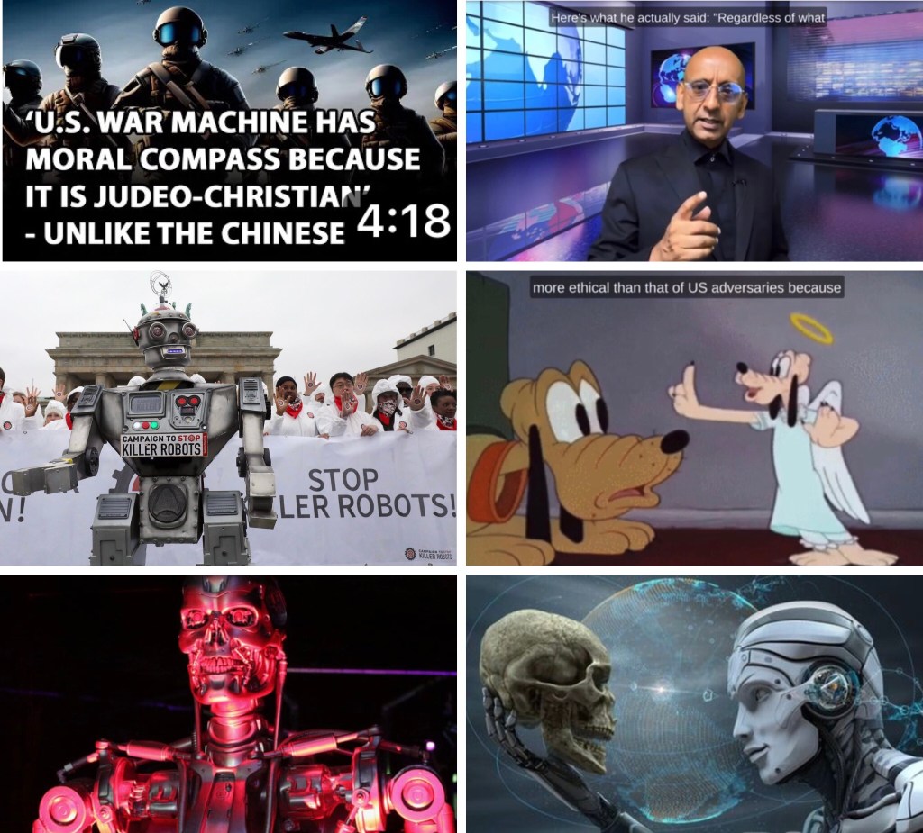 Video: US approach to AI is ethical to have killer robots “thanks to Judeo-Christian roots” when the world & China is against it 當世界和中國都反對時, 美國對人工智能的態度是道德的, “由於猶太教和基督教的根源”, 擁有殺手機器人變得合理化? 嘩! 把上帝也搬出來!