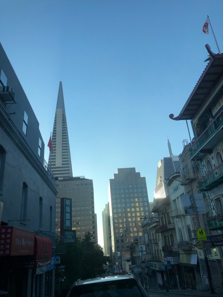 Sunrise in downtown San Francisco 7:00 in the morning, quiet and peaceful, getting ready for full day meetings.