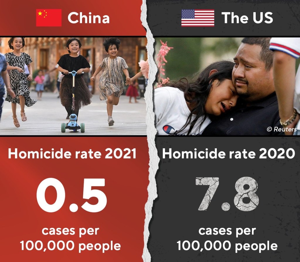 What makes @StateDept @SecBlinken think they can criticize other countries’ human right situation when they cannot protect the 40,000+ Americans killed by #gunviolence in last year alone? Aren’t the right to life & freedom from fear the primary human rights? U. S. also has the highest incarceration rate. 629 vs 119 per 100, 000 population as compared with China. 是什麼讓美國國務卿認為他們無法保護僅在去年就被槍殺害的 40,000 多名美國人時可以批評其他國家的人權狀況? 生命權和免於恐懼的自由不是首要人權嗎? 美國的監禁率也是最高的。 與中國相比,每 100, 000 人中有 629 人對 119 人