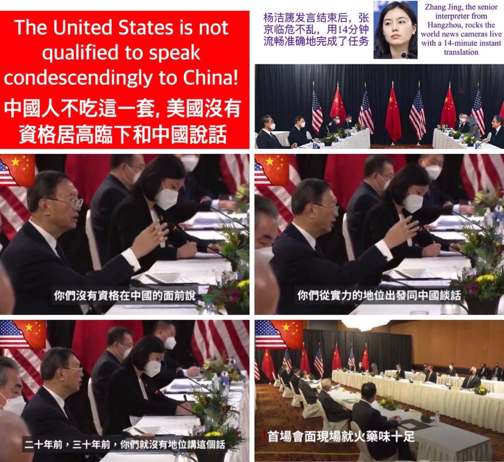 Video: The Sino-US talks are full of gunpowder. Yang Jiechi: “Don’t we suffer less from foreigners?” “US is not qualified to speak condescendingly to China! 中美會談火藥味濃,楊潔篪: 難道我們吃洋人的苦頭還少嗎? 中國人不吃這一套, 美國沒有資格居高臨下和中國說話