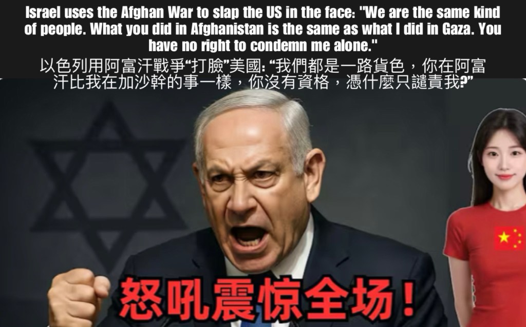 Video with English subtitles: Israel PM Benjamin Netanyahu uses the Afghan War to slap the US in the face: “We are the same kind of people. What US did in Afghanistan is the same as what we did in Gaza. Why criticize Israel and not the US? You have no right to condemn Israel.” 影片有英文字幕: 以色列用阿富汗戰爭“打臉”美國: “我們都是一路貨色,你在阿富汗比我在加沙幹的事一樣,更加出色,你沒有資格,憑什麼只譴責我?” https://www.tiktok.com/t/ZP8SQXacU/ https://youtu.be/l7yonpoN-xc?si=Y1dE8lT6cGlMV3cc