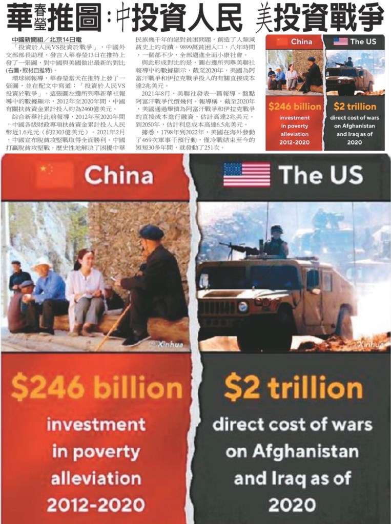 China invest on the people, US invest on the war machine-the military industrial complex 中國投資於人,美國投資於戰爭機器 – 軍工綜合體