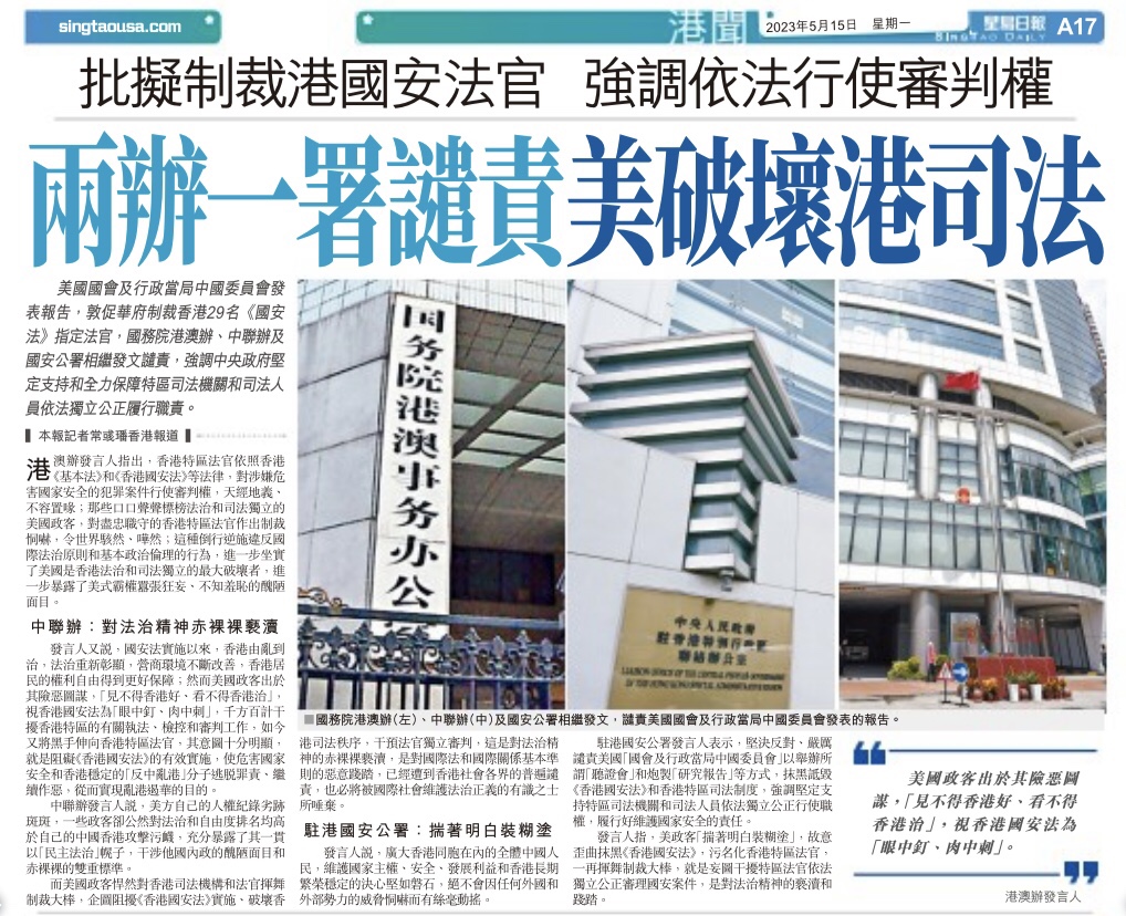 Beijing vows support for HK judges after US report calls for sanctions to support US’s failed HK regime change in 2019. State Council’s Hong Kong and Macau Affairs Office rejects report, saying it aims to smear city’s judicial system and national security law.