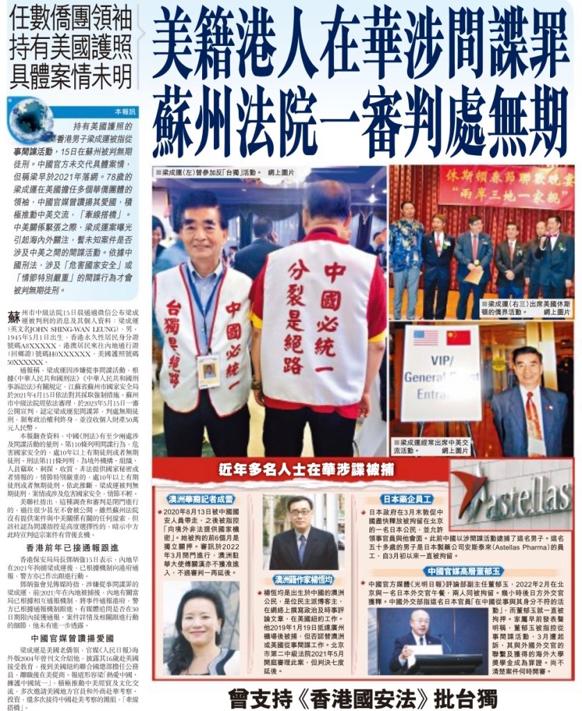 HK resident John Leung convicted of espionage, sentenced to life imprisonment. There are probably many more like him in HK & China. 說一做二, 掛羊頭賣狗肉. 香港居民梁成運被判間諜罪, 判處無期徒刑. 香港和中國可能還有更多像他一樣的人