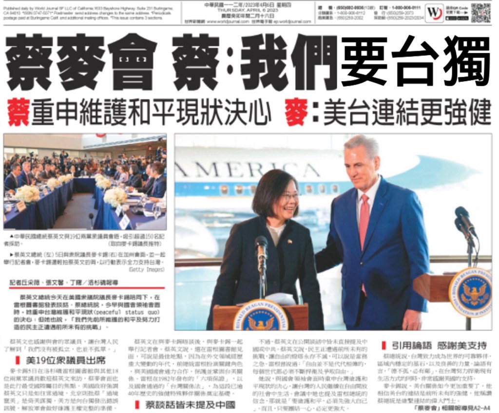 Remarks by Spokesperson of the Chinese Embassy in the U.S. on Tsai Ing-wen’s “transit” and meeting with U.S. House Speaker Kevin McCarthy 2023/04/05 19:13