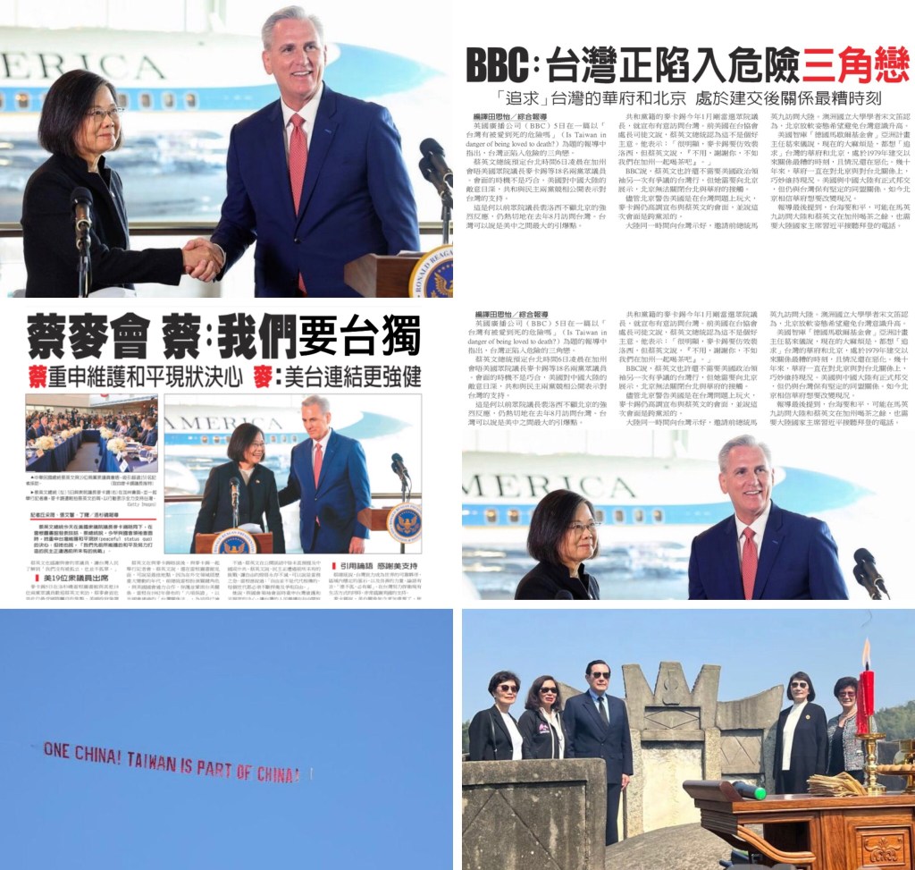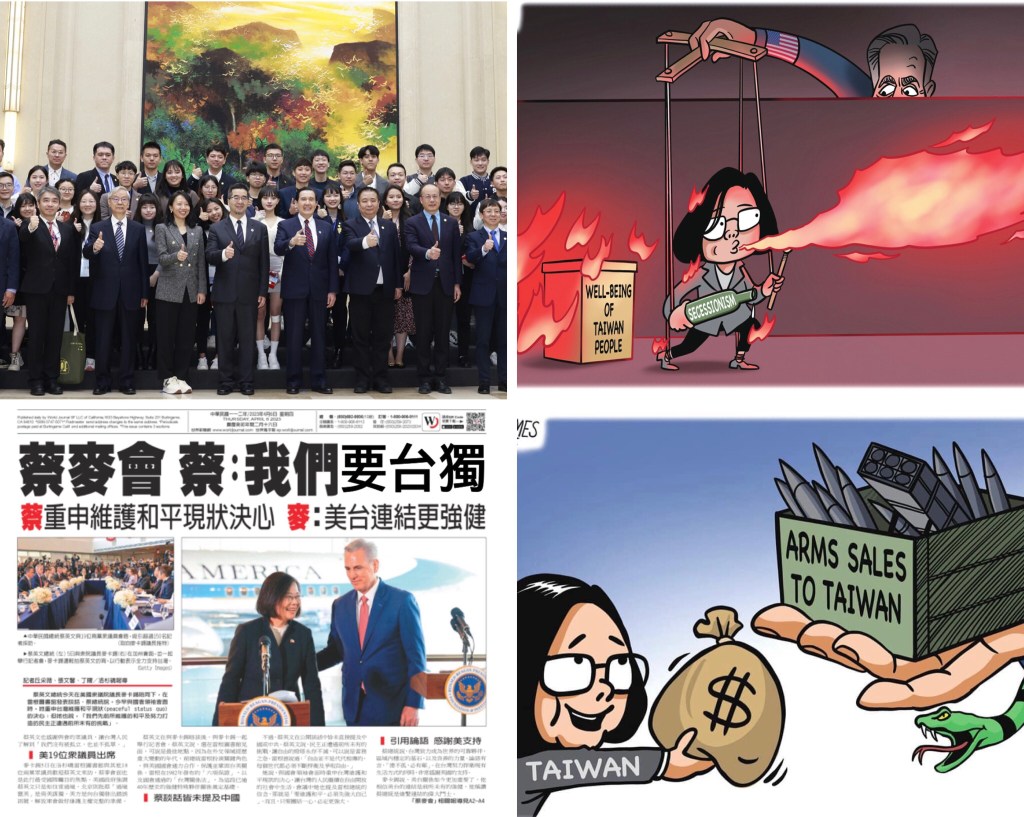 Taiwan leader Tsai Ing-wen’s so-called “transit” trip to the U.S. and planned meeting with House Speaker Kevin McCarthy have heightened cross-Strait tensions. Not only has Beijing condemned Tsai’s trip as politically motivated, but many in Taiwan also believe her move is harming the island’s own interests. She was called a warmonger and asked to get out of America by anti-war organizations when she landed. 台灣領導人蔡英文所謂的“過境”美國之行以及計劃與眾議院議長凱文麥卡錫會面,加劇了兩岸緊張局勢。北京不僅譴責蔡英文此行具有政治動機,而且台灣許多人也認為她的舉動損害了台灣自身的利益。她被稱為戰爭販子,登陸後反戰組織要求她離開美國