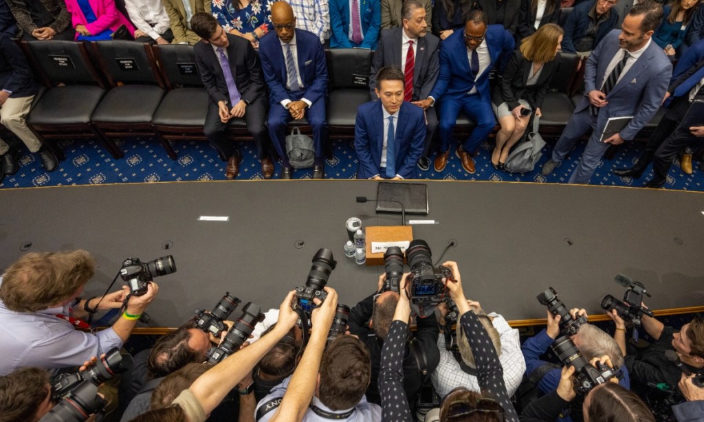 TikTok CEO Shou Zi Chew (center) testifies at a US Congressional hearing on March 23, 2023. The hearing, which was supposed to discuss data security and protection of children, was described by many netizens as a barbaric witch-hunt and pure bullying.