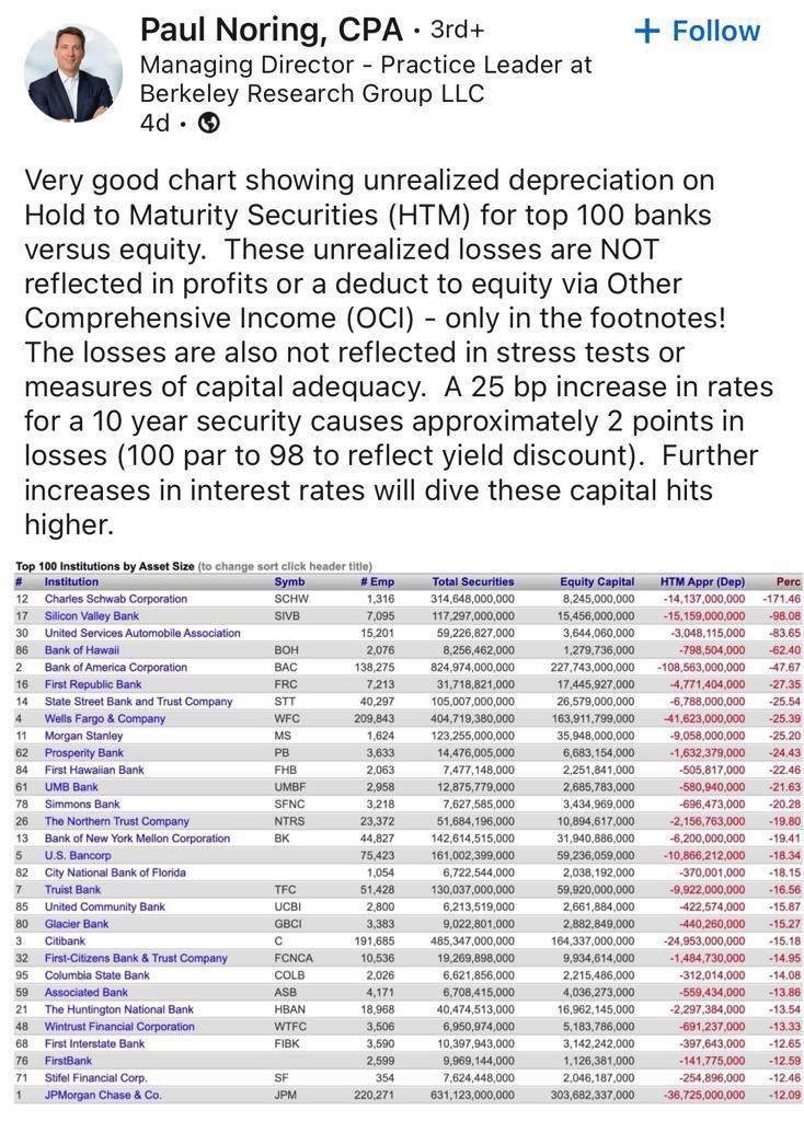 Bank of Hawaii, First Hawaiian Bank and Well Fargo are on the list. It is the list you don’t want your bank to be on and that was how Silicon Valley Bank ended in bankruptcy. Have you notice no China banks on the list! It is because they are the safest. BOH, FHB和 Well Fargo銀行都在名單上. 矽谷銀行就是在這樣名單上不久便宣布破產告終的,你的銀行在名單上的嗎? 有沒有注意到中國四大銀行不在名單上! 因為它們是全球全安全的銀行!