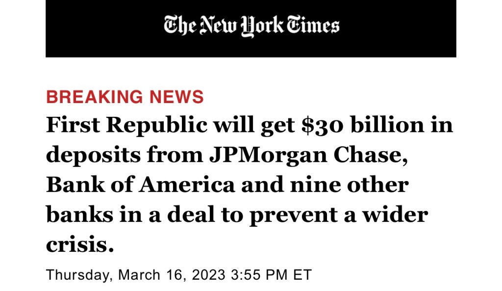 Breaking News: First Republic reaches $30 billion rescue deal with other banks! But who is going rescue JP Morgan Chase, BOA and the other 9 banks next weeks?