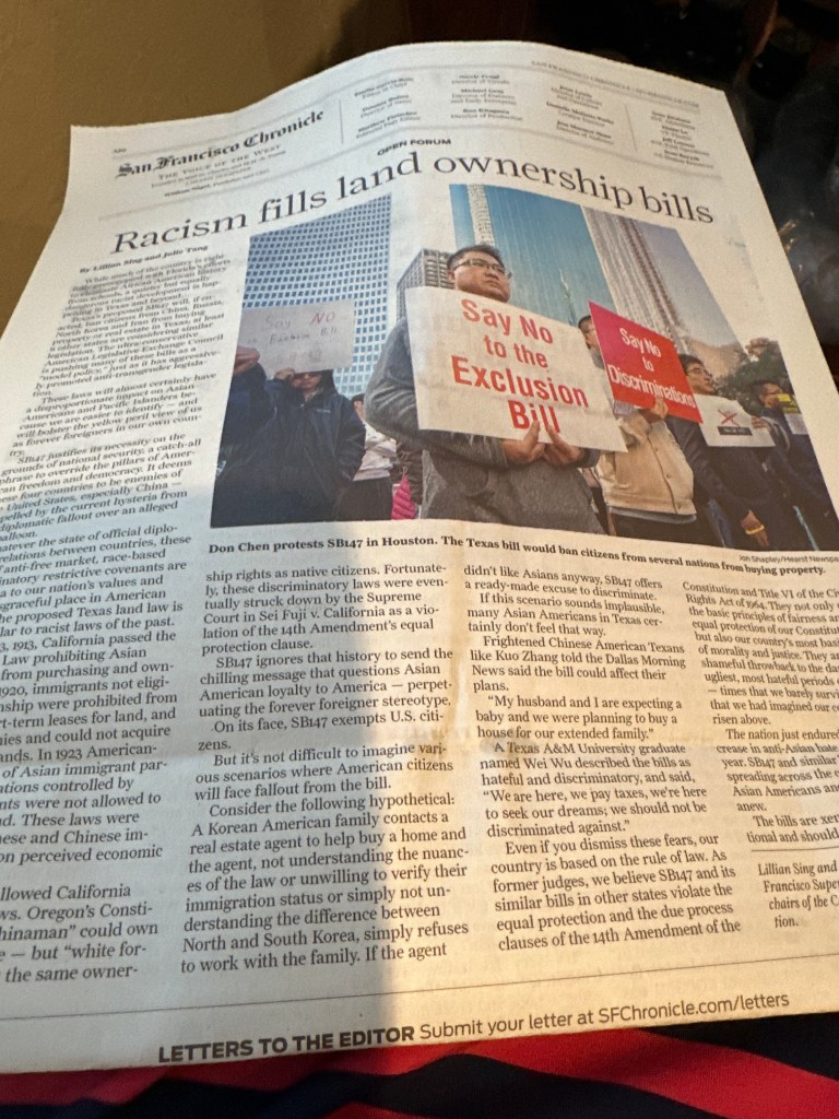 San Francisco Chronicle: While Florida targets Black history, Texas Republicans plan to make life miserable for Asian Americans 佛羅里達州針對黑人歷史,德克薩斯州共和黨人計劃讓亞裔美國人的生活悲慘 By SF Superior Court Judges Lillian Sing and Julie Tang Feb. 27, 2023
