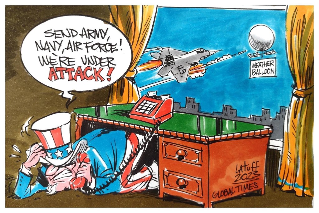 US overreacts by shooting down Chinese weather balloon. Cartoon: Carlos Latuff US overreacts by shooting down Chinese weather balloon. Cartoon: Carlos Latuff