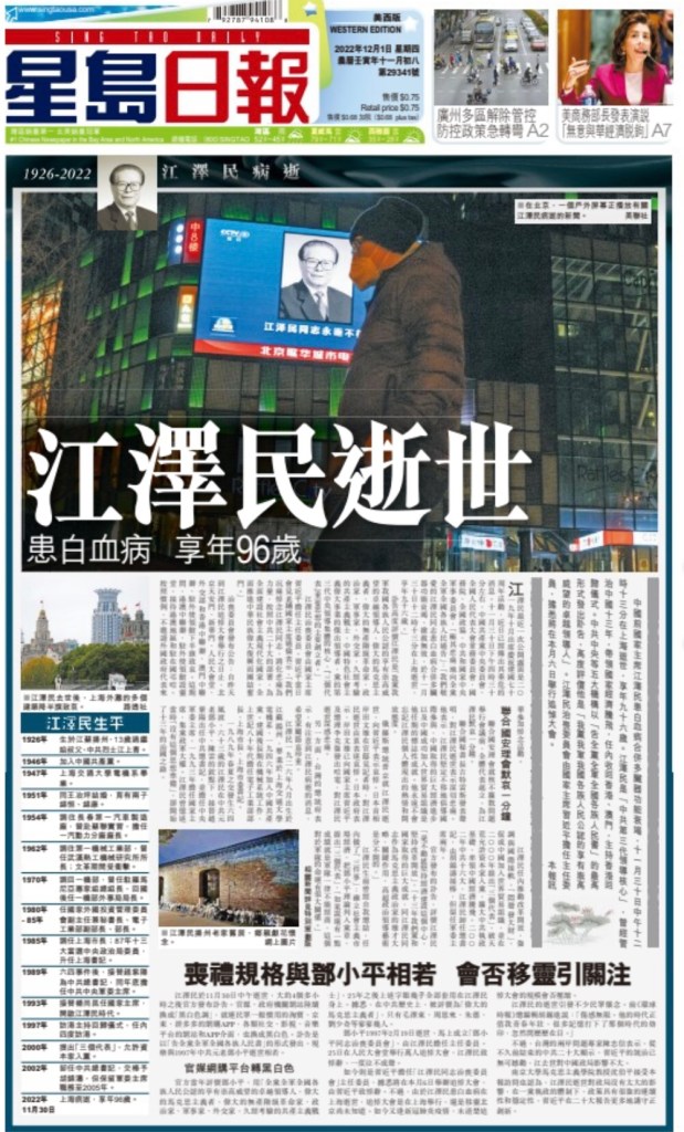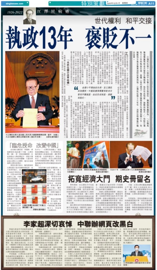 China mourns passing of former leader Jiang Zemin. Xinhua – Global Times Nov 30 2022