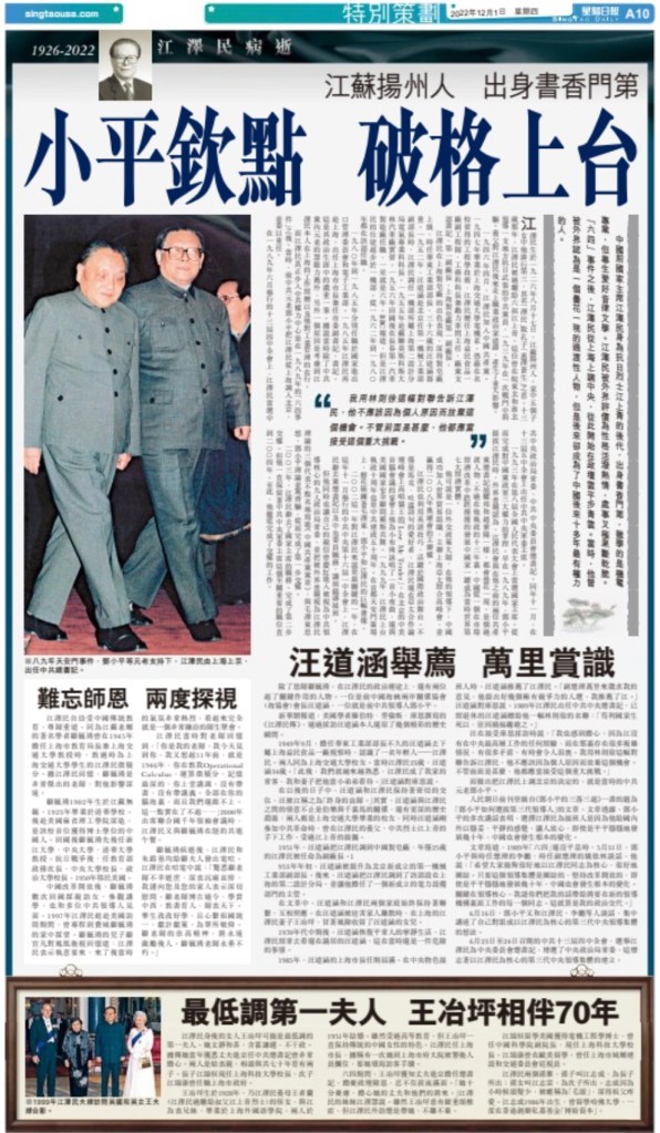 The Associated Press said on Wednesday that “Jiang guided the country’s rise to economic power… China passed Germany and then Japan to become the second-largest economy after the US.”