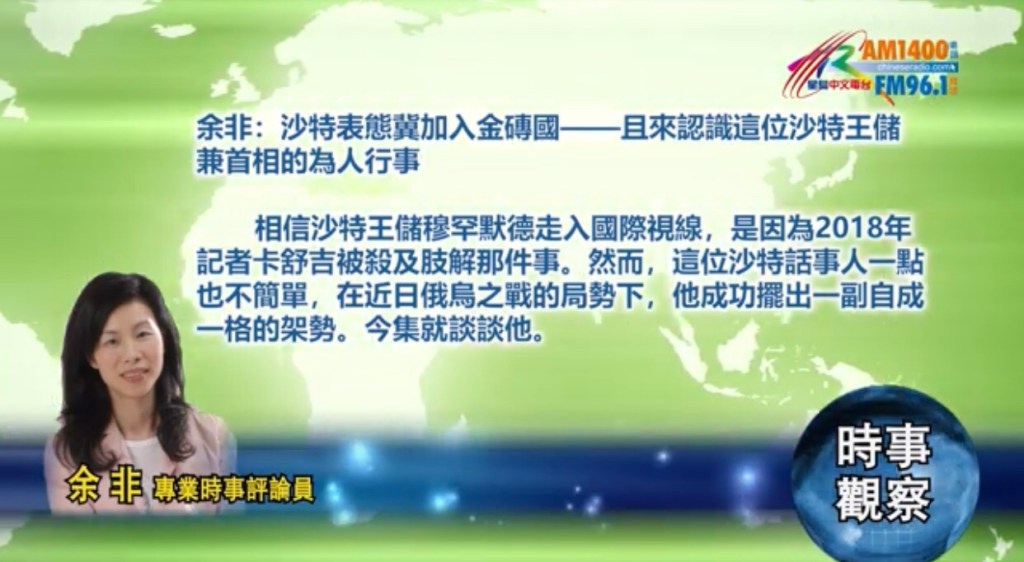 星𡷊日報三藩市時事觀察 余非:沙特表態冀加入金磚國, 且來認識這位沙特王儲兼首相的為人行事