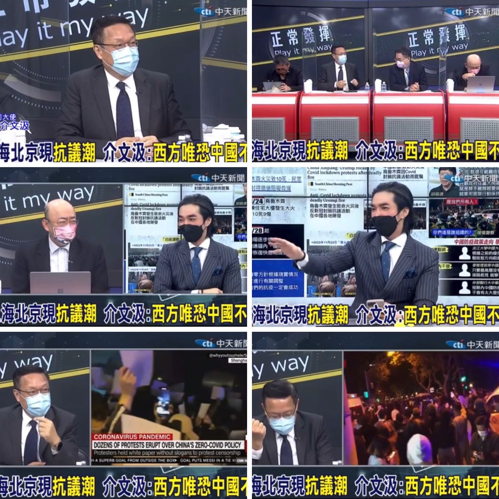 Taiwan CTI Video: Taiwan diplomat debunks Western Medias especially BBC fake news propaganda on 6 Universities protest in China last for less than 12 hrs. BBC reporter refused to show press pass according to law in order to get arrested to demonize Chinese & China. 上海北京現抗議潮 介文汲:西方唯恐中國不亂 台灣外交官揭穿西方媒體特別是 BBC 假新聞宣傳 6 所大學在中國抗議不到 12 小時。 BBC記者拒絕依法出示記者證,為的是被捕妖魔化和中國。