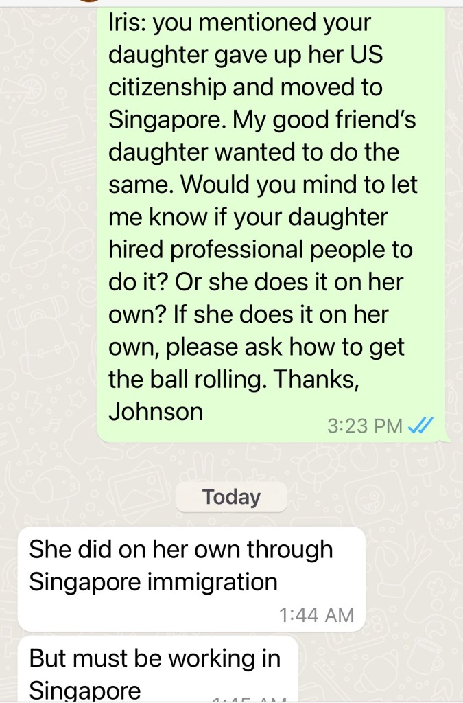 The big difference between our discussion and Chinese families in Silicon Valley and Hong Kong are their families including parents and grandparents are in full support for their children and grandchildren to give up their US Citizenships. Looking at the dozens I know who gave up their US citizenships last 5 years! Only one kind of people did it: they are all smart, educated and full of energy!